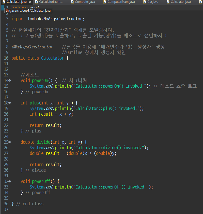 도출된 기능(행위)을 메소드로 선언해보기